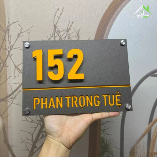 Bảng, Biển Số Nhà – Alcorest Vàng Hội An + Mica Ghi Sần – Số Nổi 1cm Đế Mica Trong 1cm – Lắp Ngoài Trời