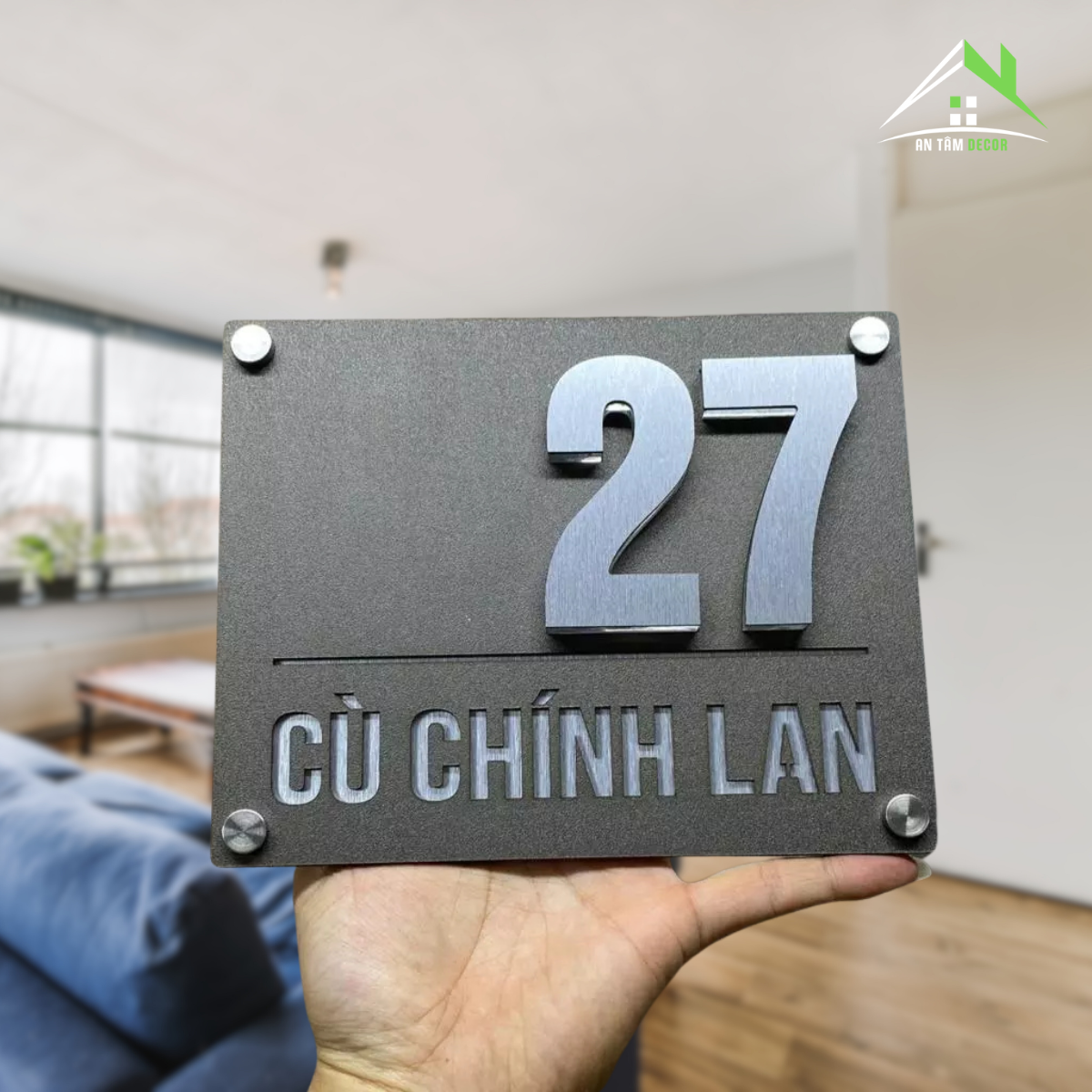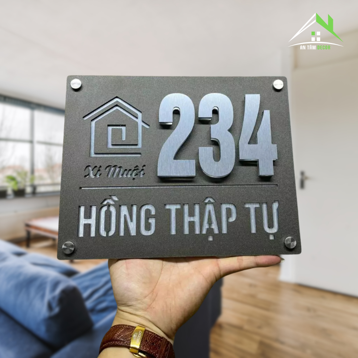 BIỂN SỐ NHÀ – CHẤT LIỆU ALCOREST + MICA GHI SẦN, SỐ NỔI 10MM NGOÀI TRỜI