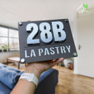 Số nhà được cắt nổi 10mm bằng mica trong sang trọng, hiện đại.