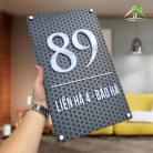 BẢNG, BIỂN SỐ NHÀ, Nền Alcorest +Mica cán ghi sần, inox 304 xước bạc, số nhà nổi, ngoài trời BSN-AT1