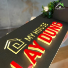 Biển Số Nhà, Tên Shop – Đèn LED – Inox Xước Bạc + Mica Vân Gỗ – Thiết Kế Tên Nổi Sang Trọng