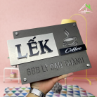 Mặt bảng được làm từ inox xước bạc kết hợp mica cán ghi sần. Phần chữ “LẾK” là mica nổi 10mm đen sang trọng, các chi tiết còn lại sử dụng kỹ thuật cắt âm bản có đèn LED hắt sáng.