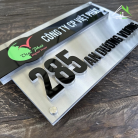 Bảng, Biển Số Nhà. Đèn LED, Mặt Inox Xước Bạc Kết Hợp Mica Đen, Số Nổi, Ngoài Trời