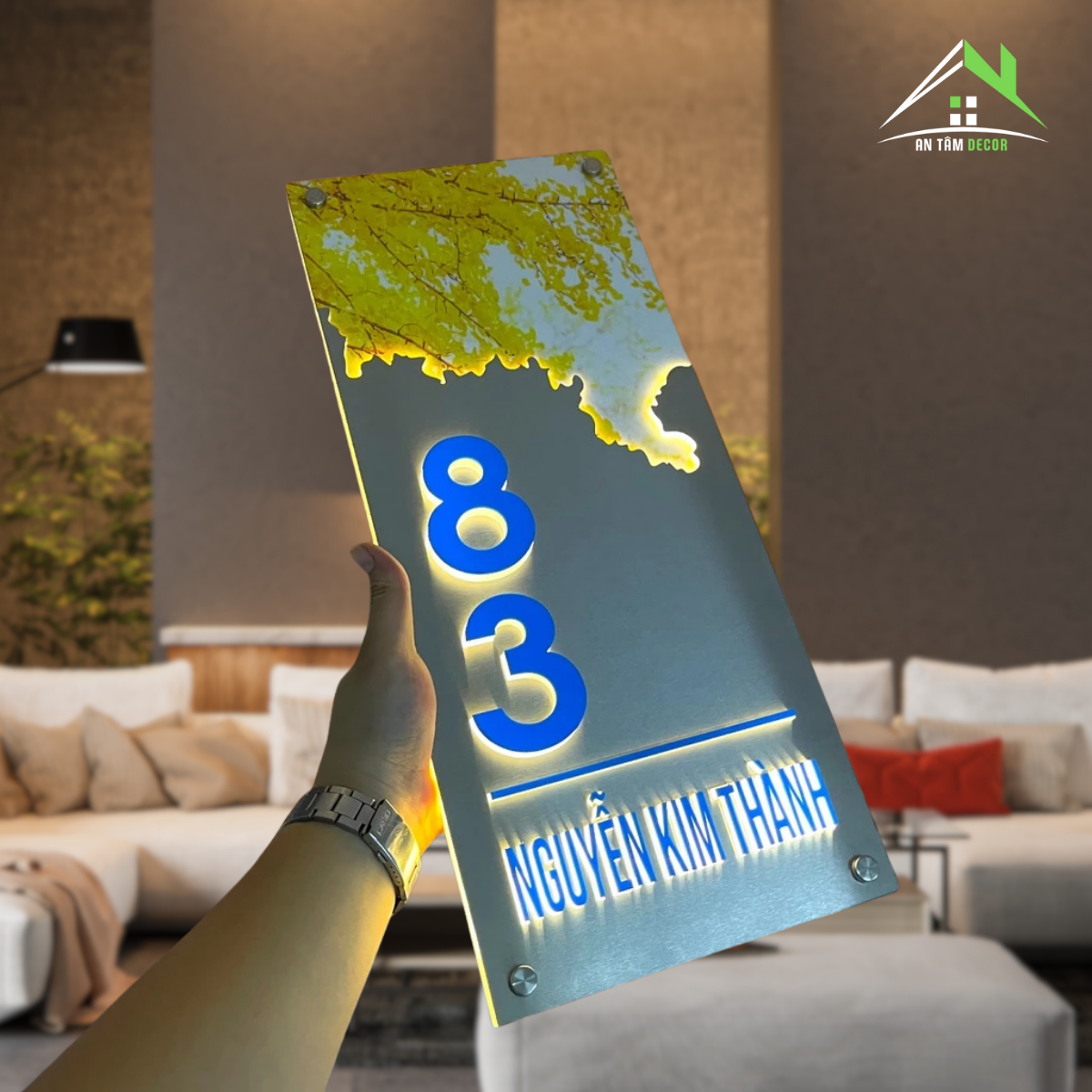 Đèn LED hắt sáng viền giúp biển số nhà nổi bật cả ngày lẫn đêm. Thích hợp sử dụng cho nhà phố, biệt thự, văn phòng, quán cà phê hoặc các không gian sang trọng cần biển chỉ dẫn rõ ràng.
