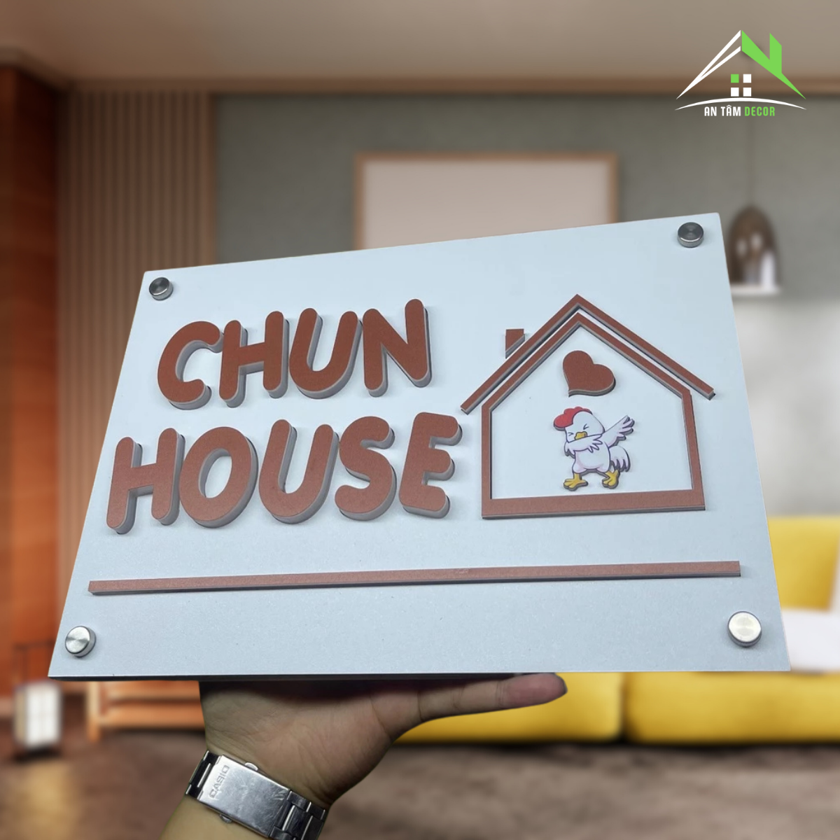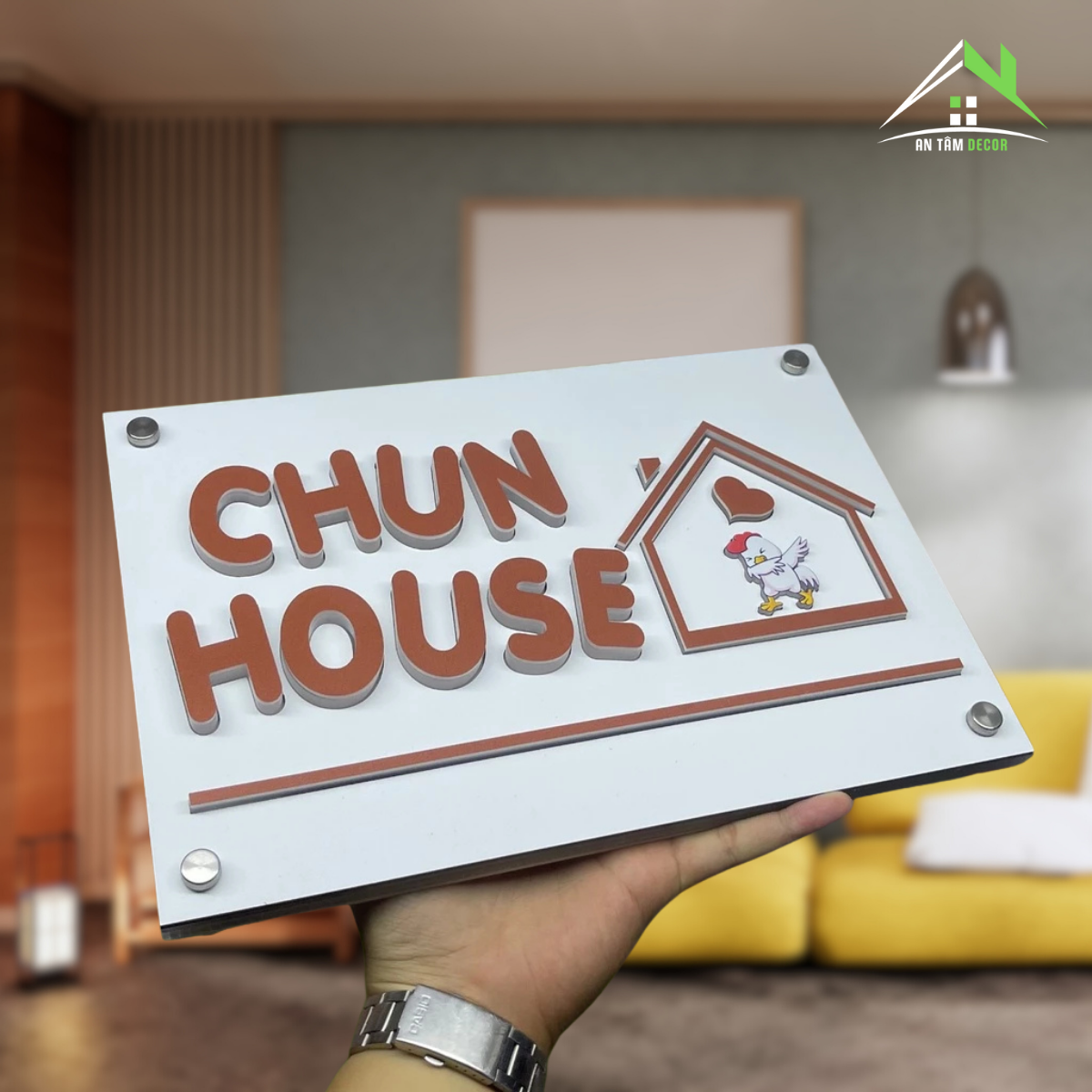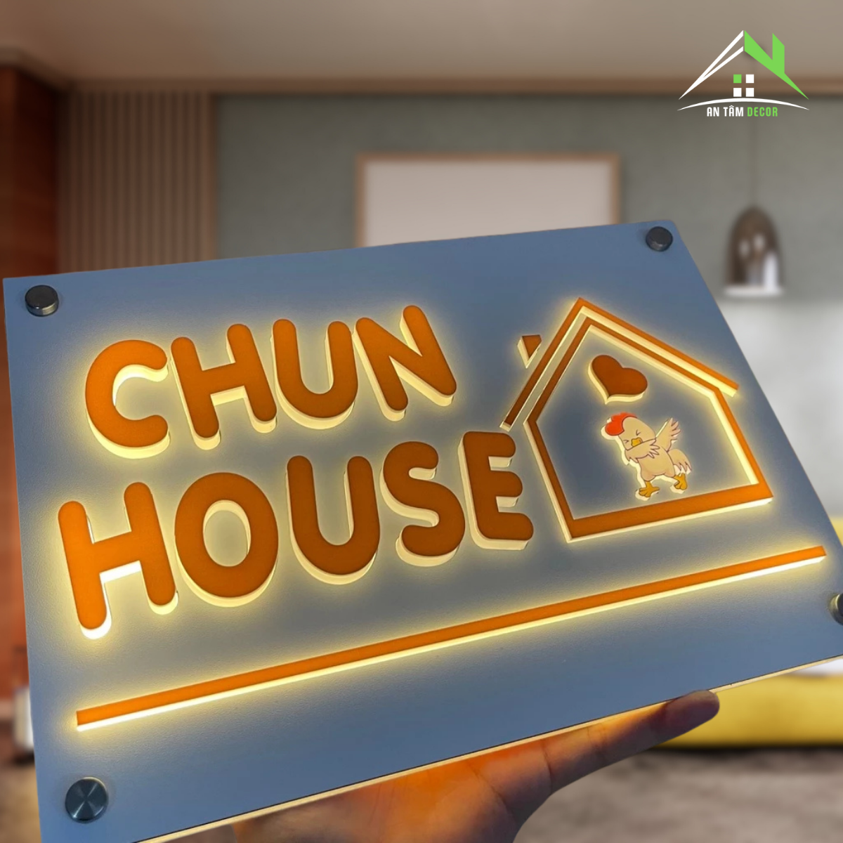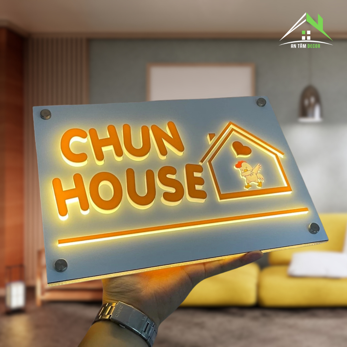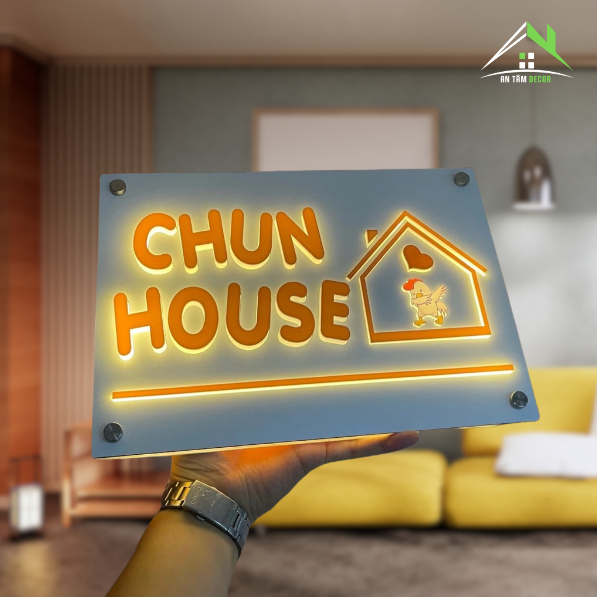 Bảng, Biển Số Nhà – Đèn LED – Mặt Mica Trắng Sần In UV – Họa Tiết Dễ Thương, Ngoài Trời