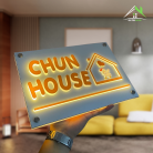 Biển Số Nhà, Tên Shop – Đèn LED – Inox Xước Bạc + Mica Vân Gỗ – Thiết Kế Tên Nổi Sang Trọng