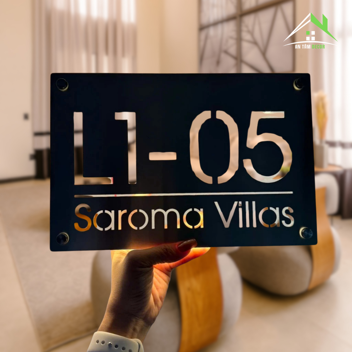 Hiển thị rõ ràng số nhà và tên dự án. Đèn LED giúp dễ nhận diện vào ban đêm. Thích hợp gắn trước nhà phố, biệt thự hoặc cổng khu dân cư.