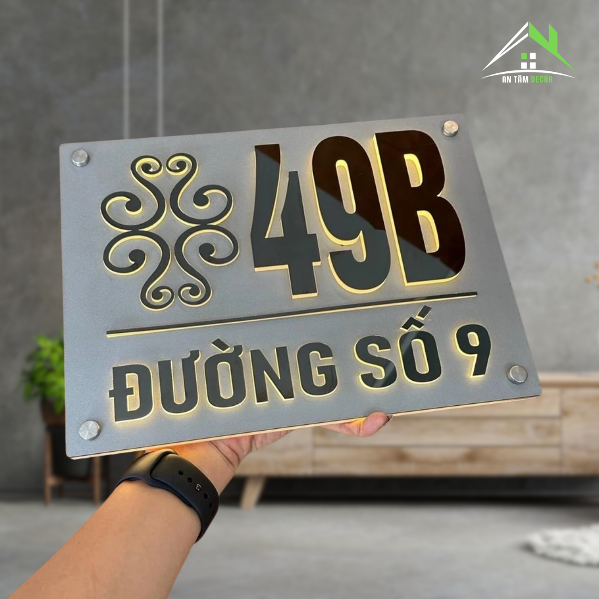 Biển Số Nhà Mica Ghi LED – Số Nổi 8mm Chân Cháo – Inox Đen Sang Trọng Ngoài Trời
