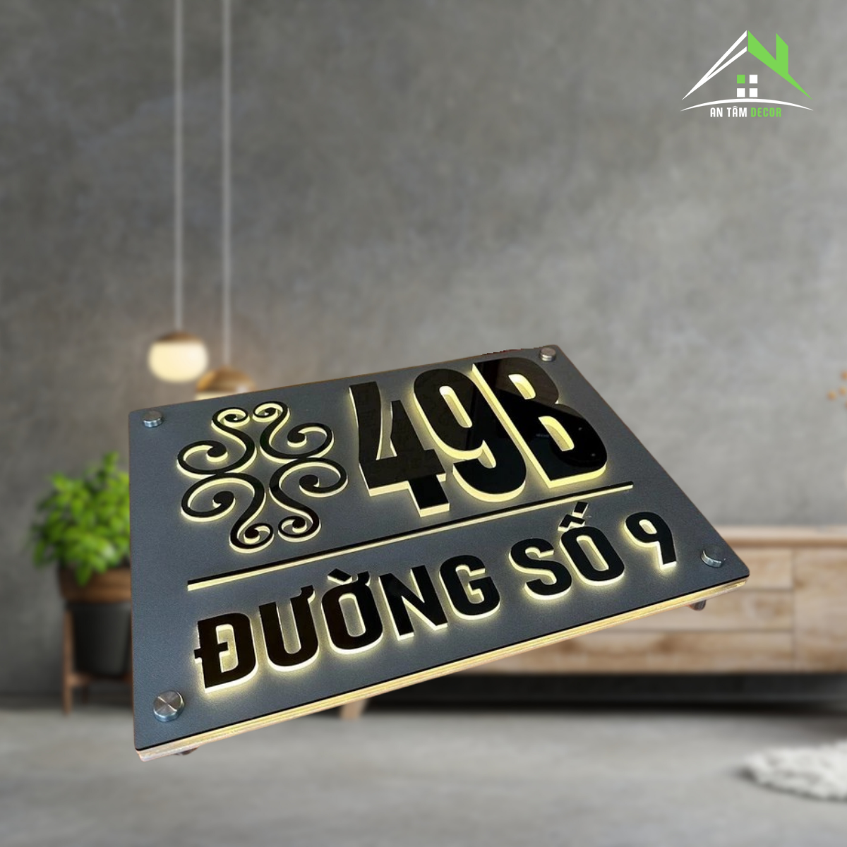 Biển được trang bị đèn LED vàng âm phía sau nội dung giúp dễ nhìn ban đêm, nâng tầm thẩm mỹ và công năng.