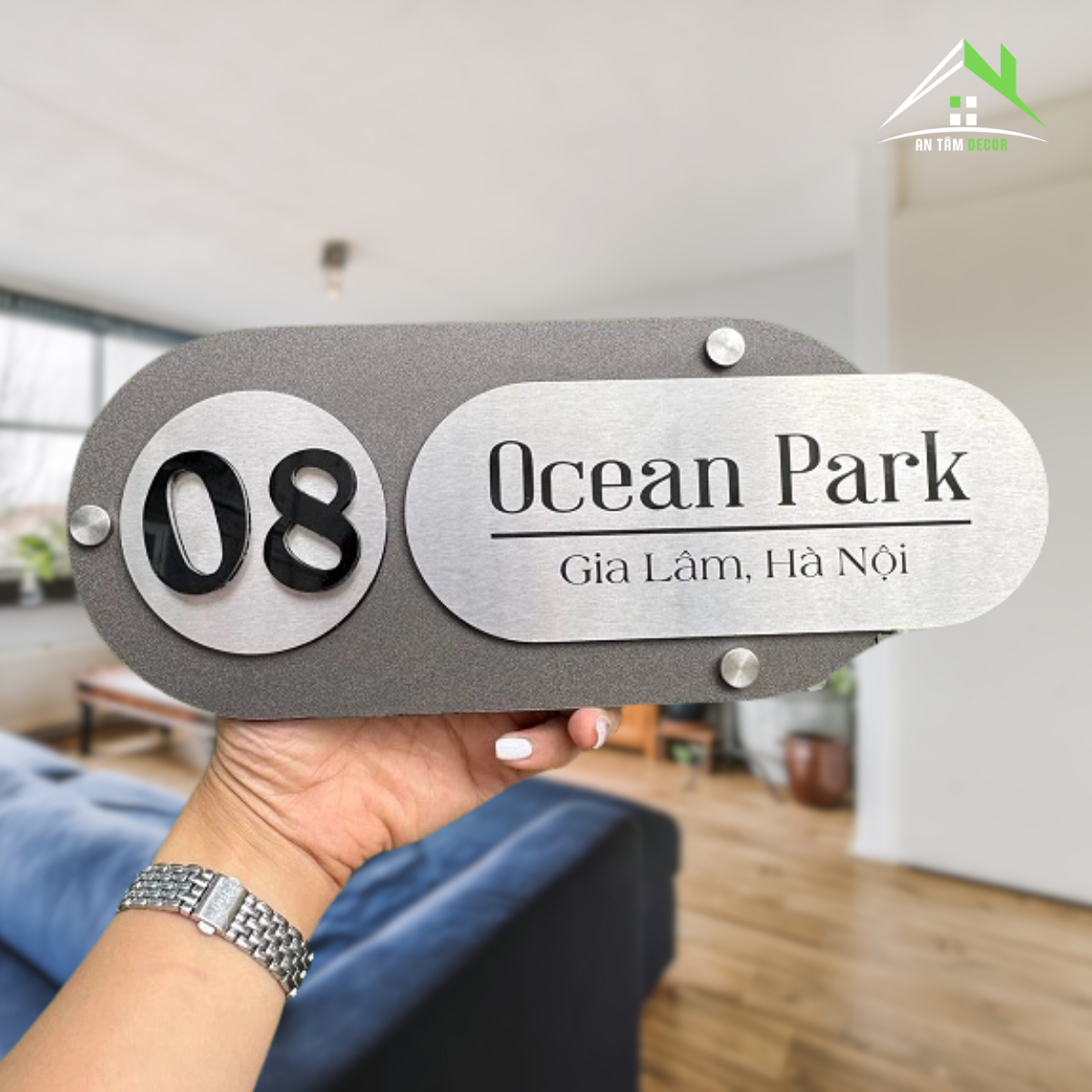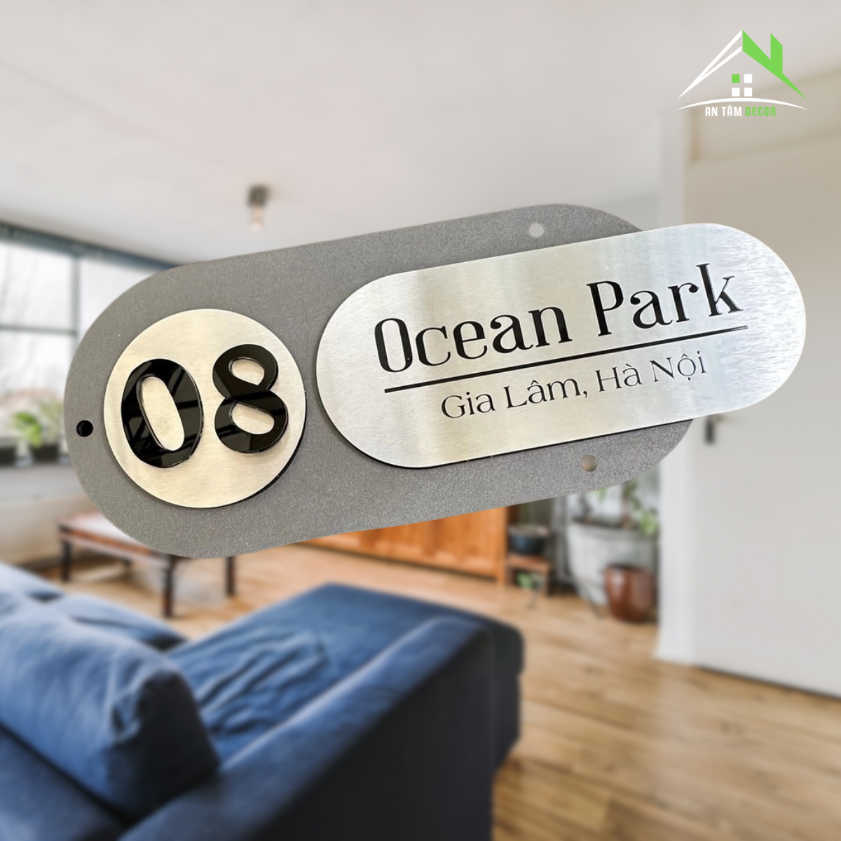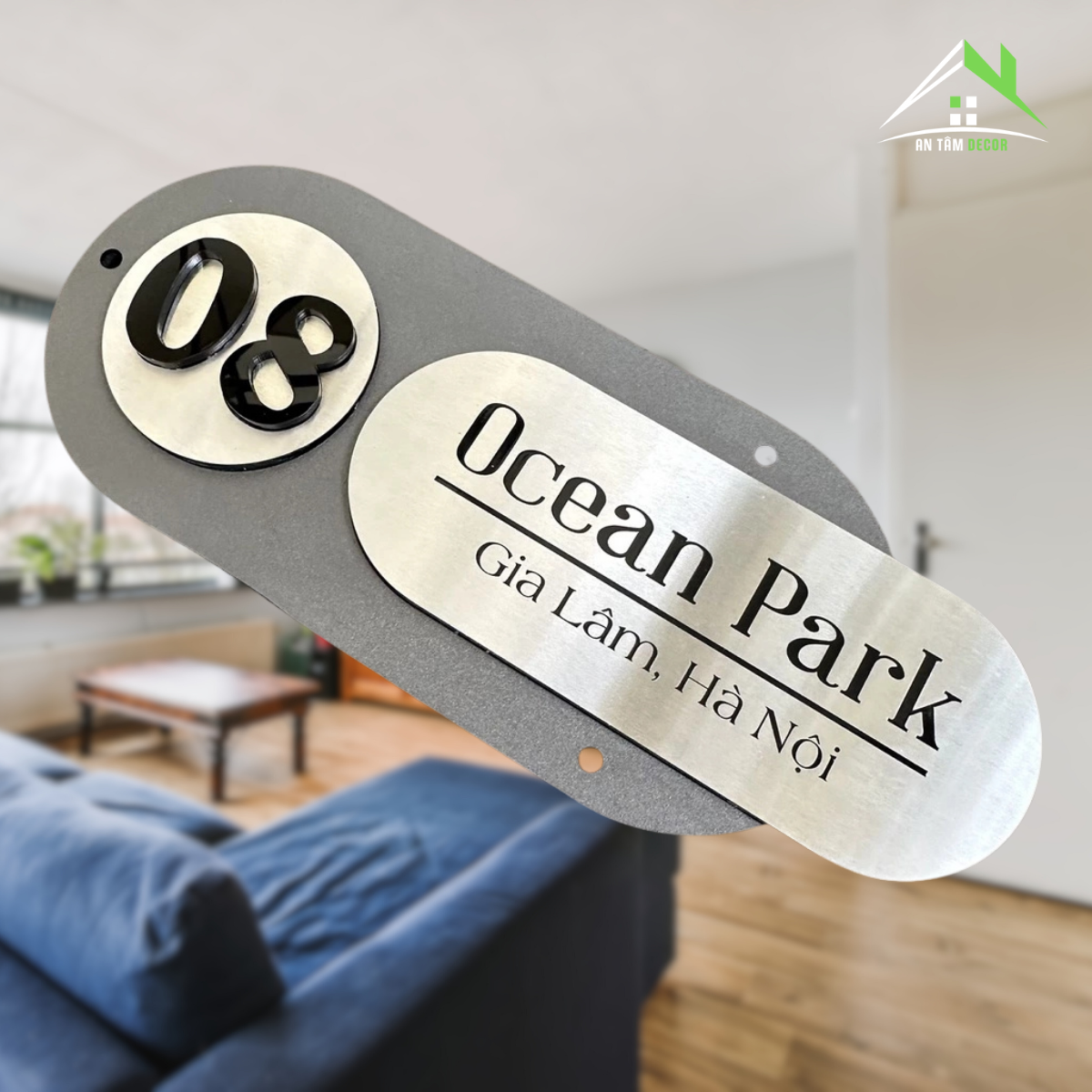 Biển Số Nhà Inox Xước Bạc Kết Hợp Mica Số Nổi – Thiết Kế Hiện Đại Cho Ocean Park