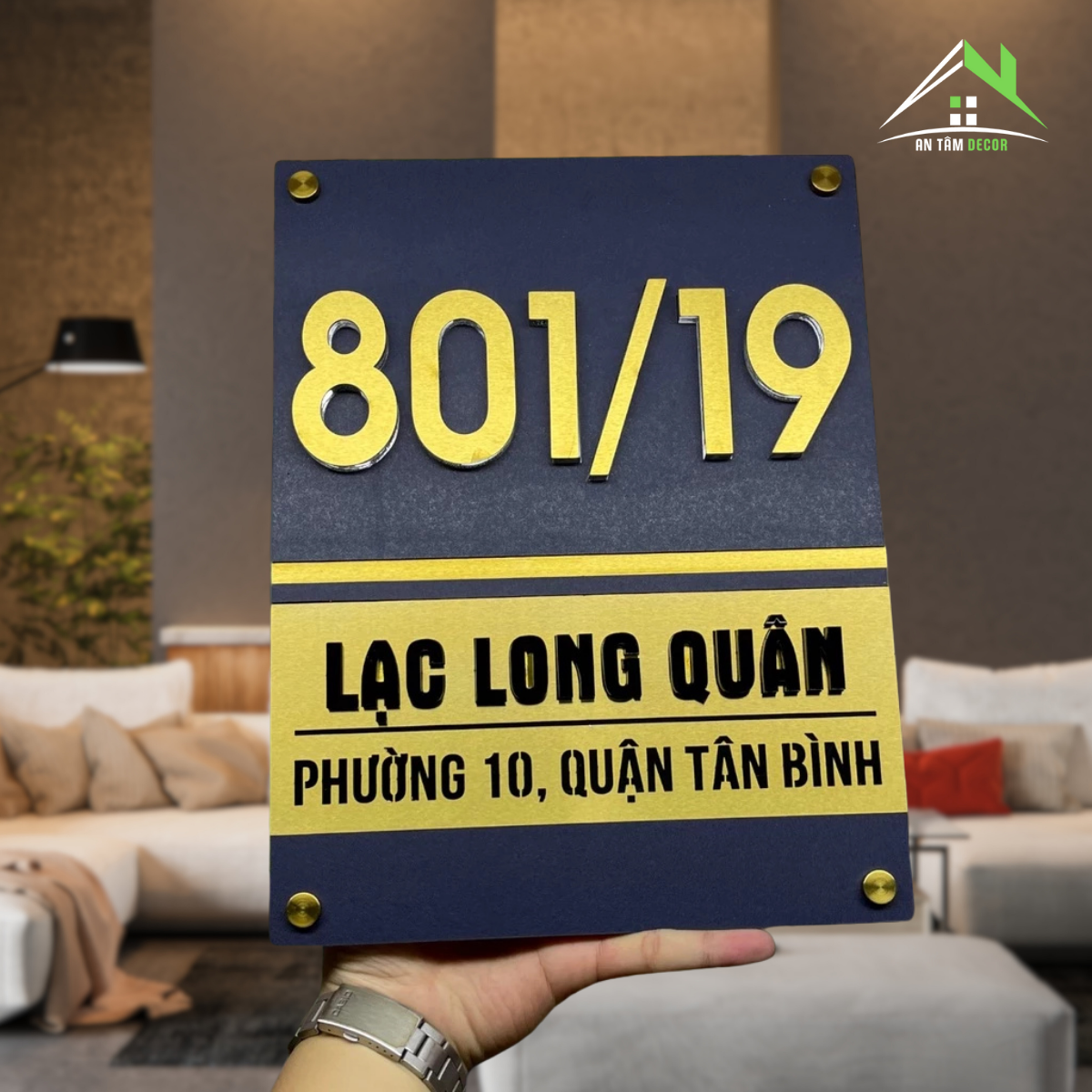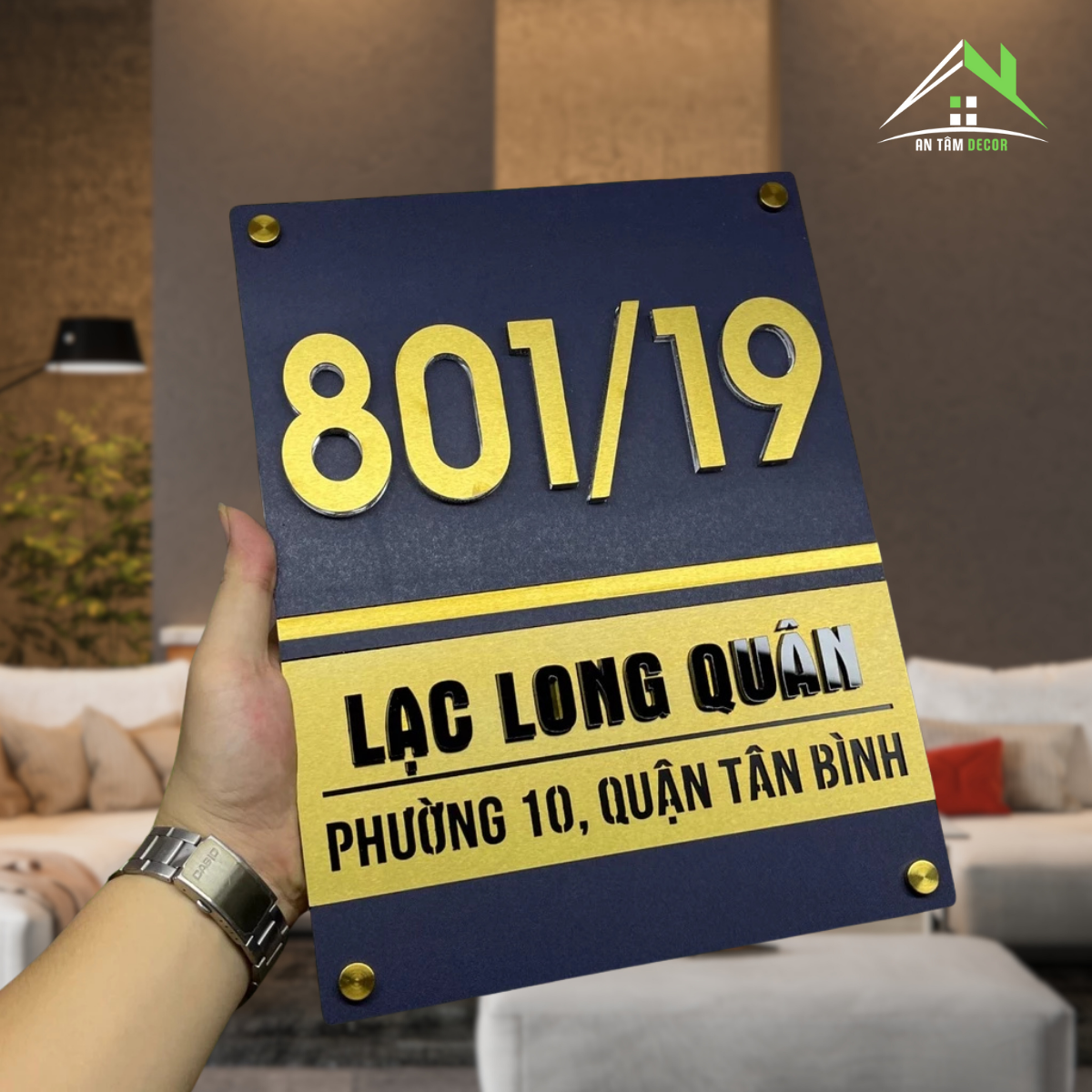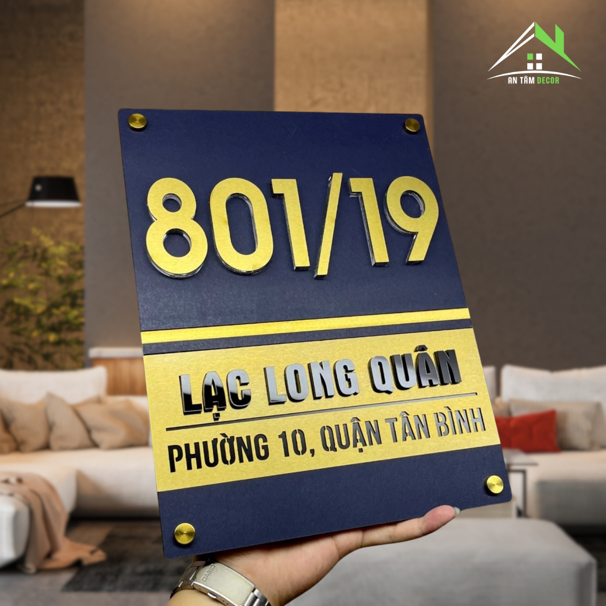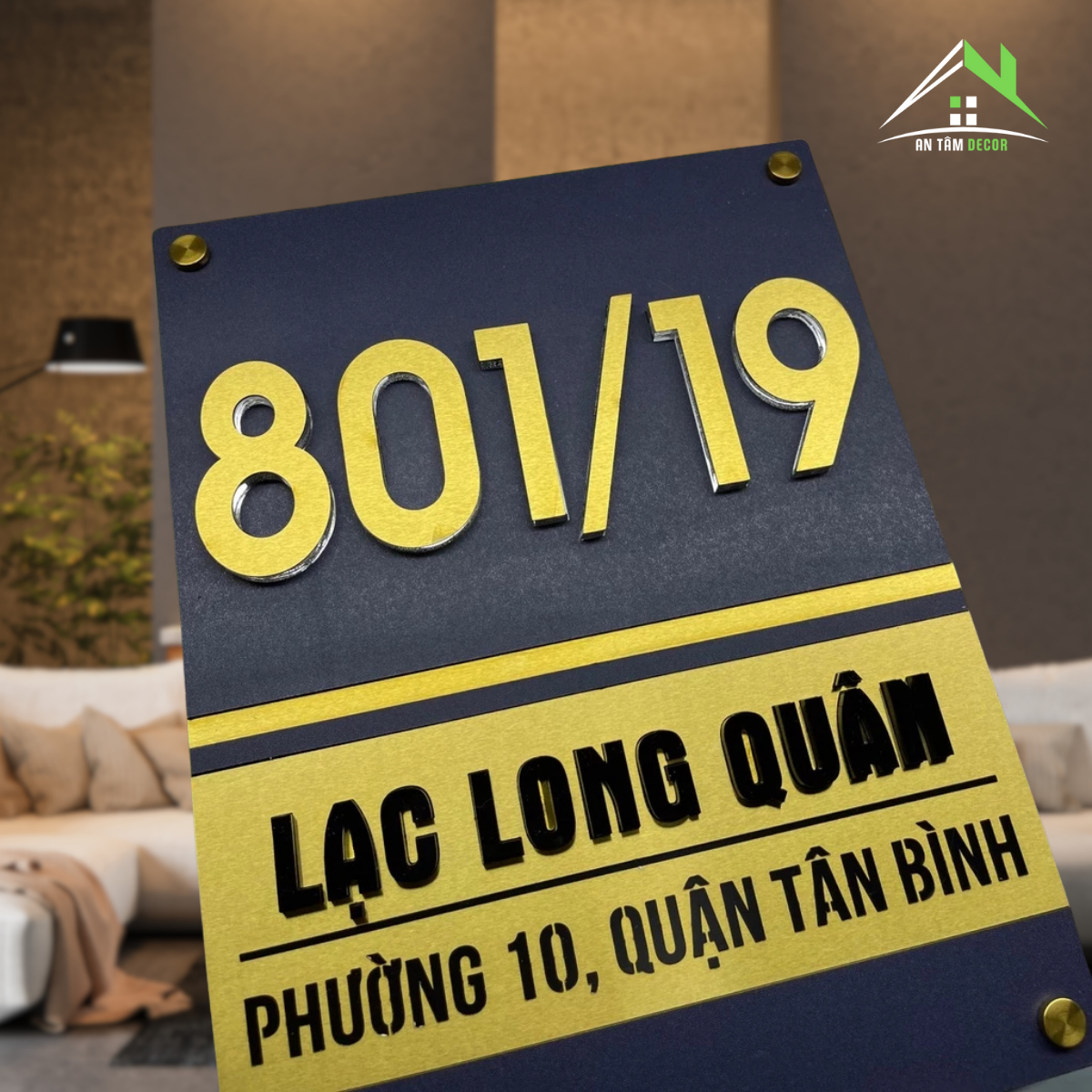 Thiết kế tối giản mà vẫn sang trọng, nổi bật với số nhà inox vàng nổi 1cm, nội dung in UV rõ nét.