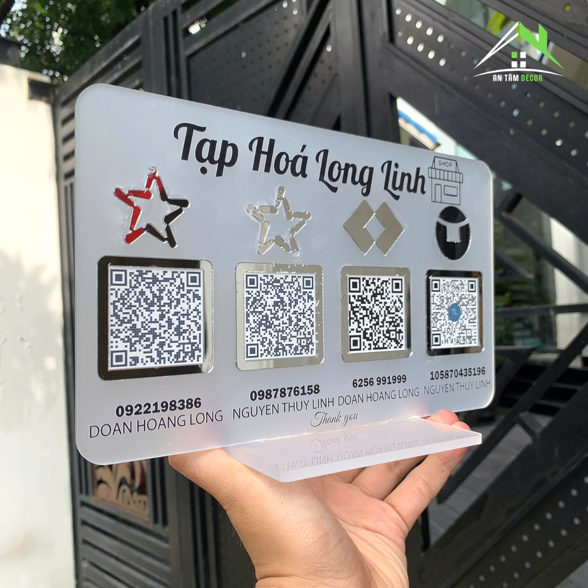 Bảng Mã QR Code Tạp Hoá Long Linh – Mica nhám, In UV Sắc Nét, Đế Đứng Tiện Lợi