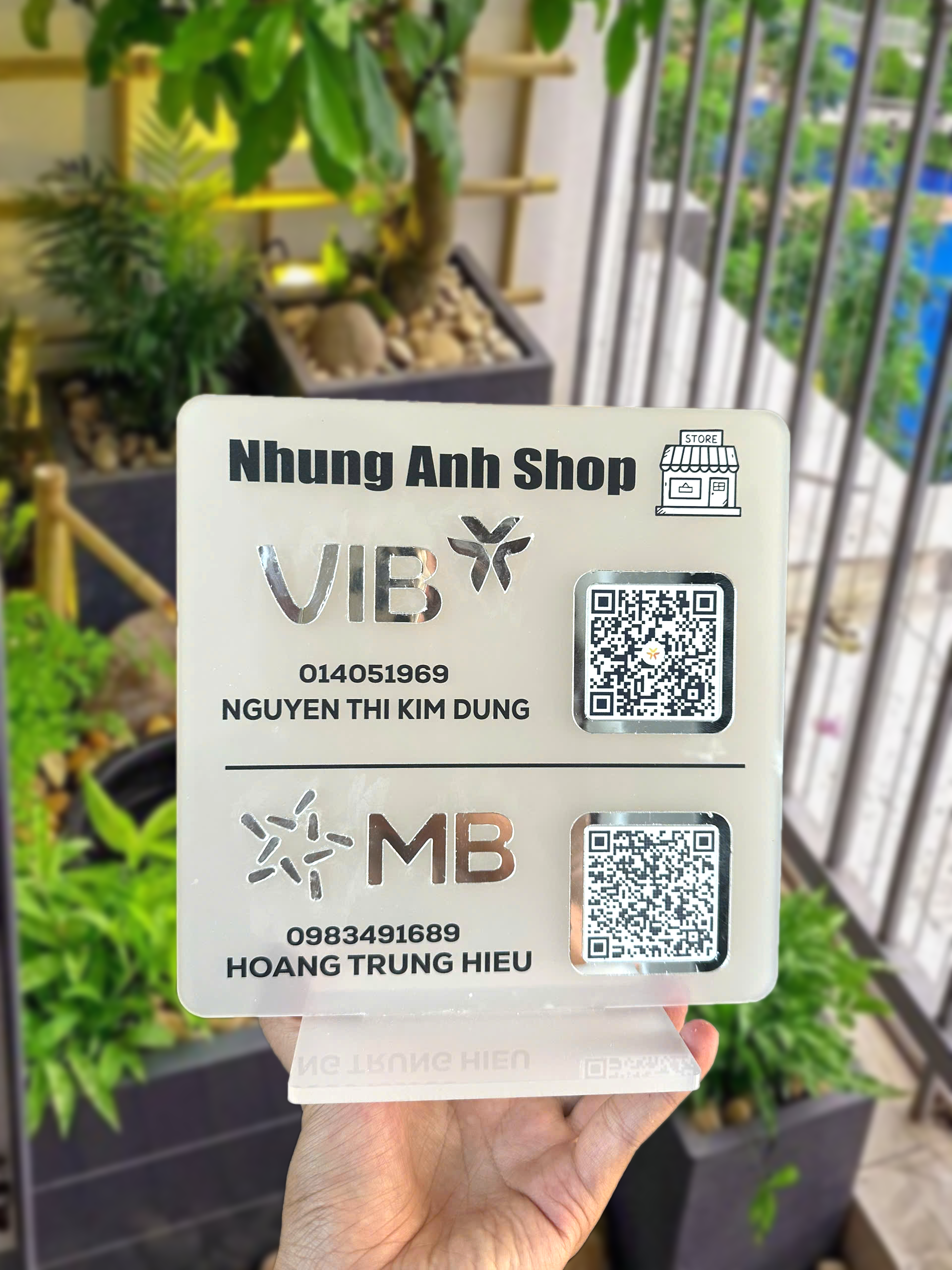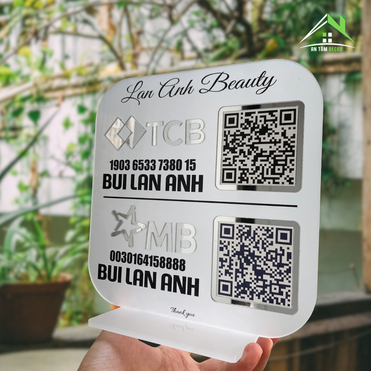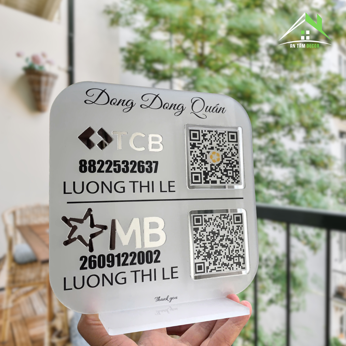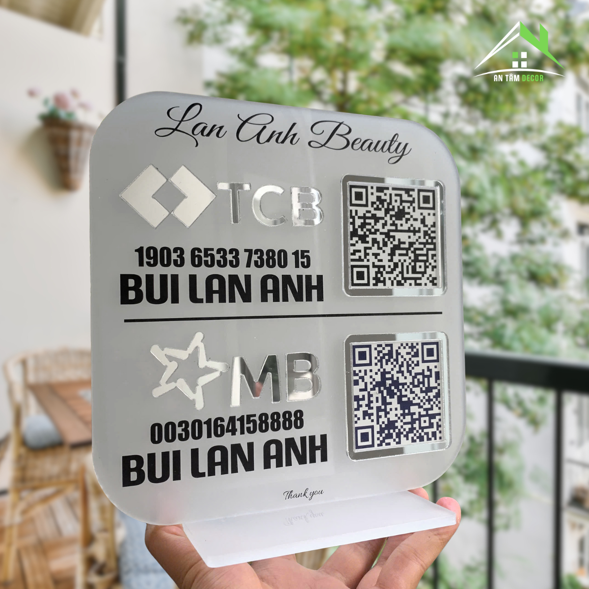 Biển QR Code Ngân Hàng MB & TCB Nền Mica Nhám – In Logo, Tên, Số Tài Khoản Theo Yêu Cầu
