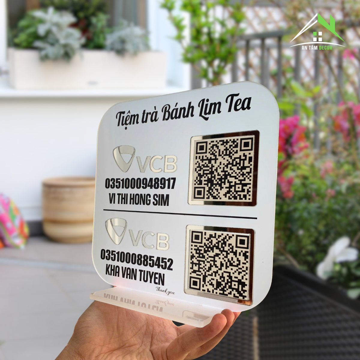 In tên thương hiệu, tên chủ tài khoản, số tài khoản và logo ngân hàng theo yêu cầu.