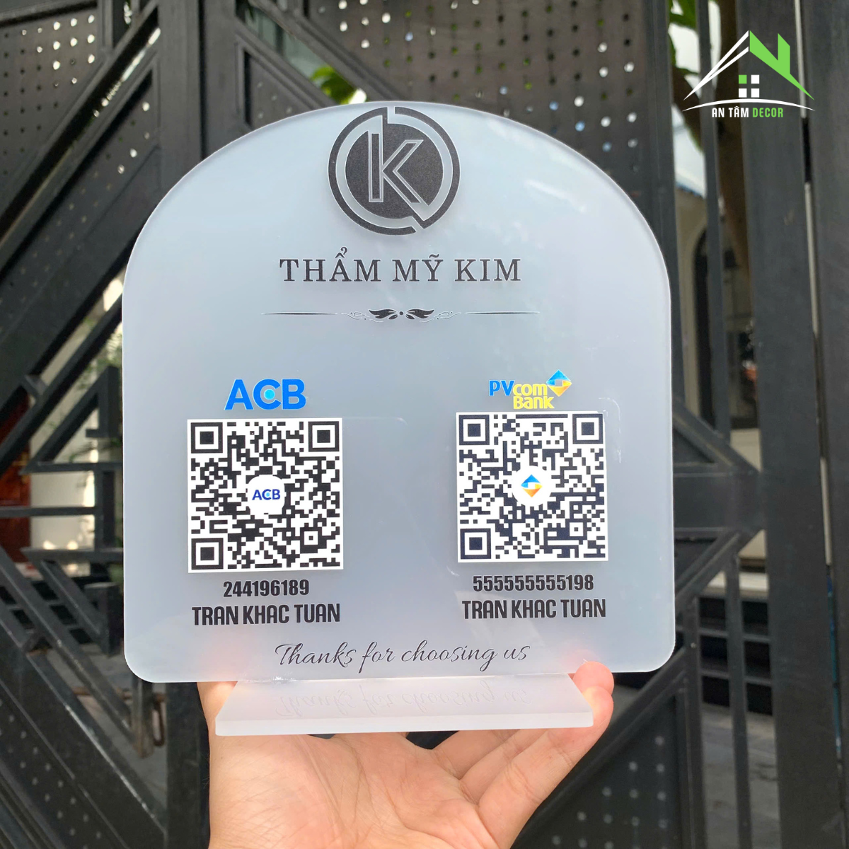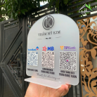 BIỂN QR CODE THANH TOÁN Ngân Hàng. Mẫu Đế Cong Mica Nhám Sang Trọng, In UV Logo & QR, Đứng Bàn Quầy Thu Ngân