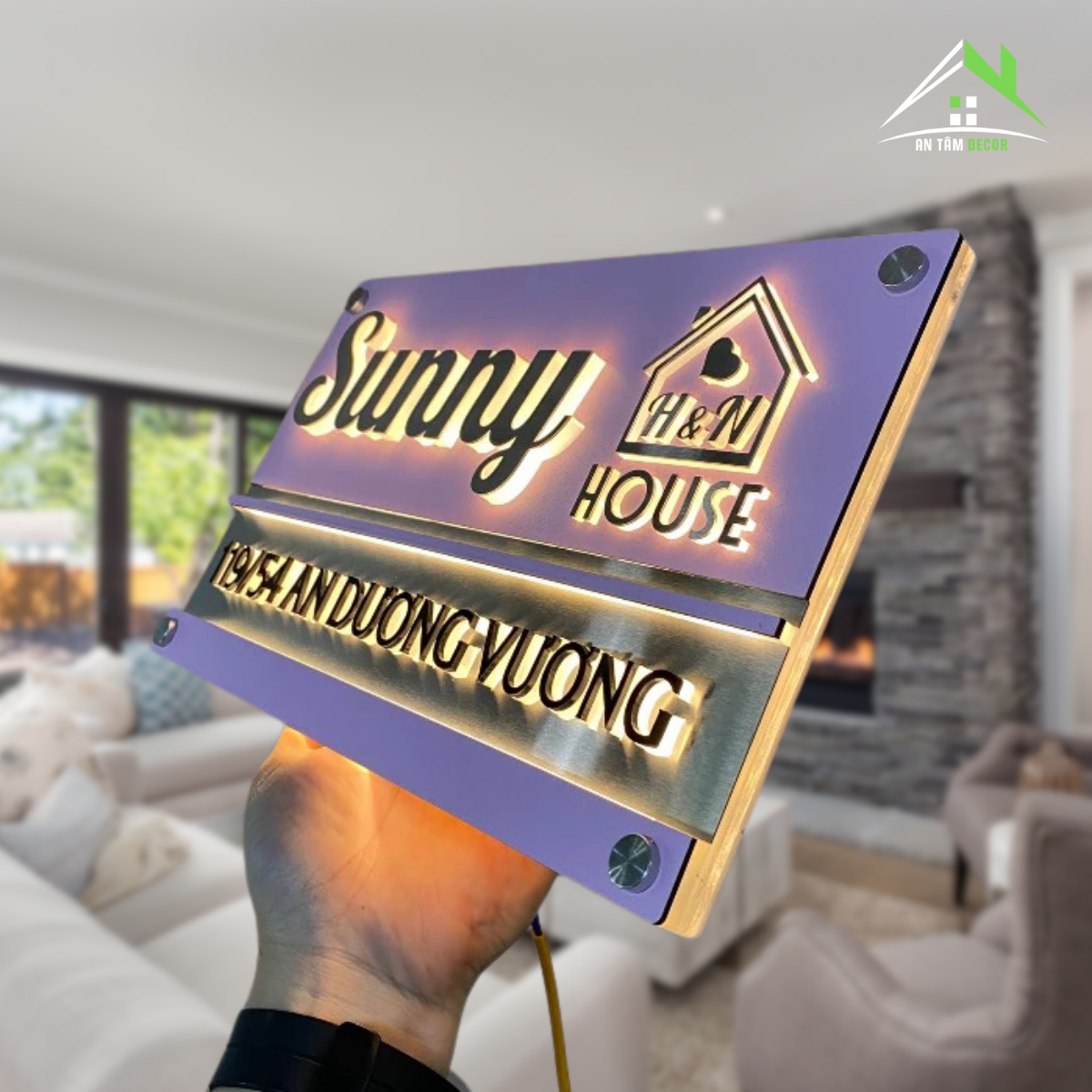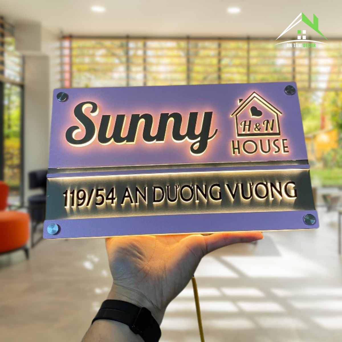 Biển Số Nhà Có Đèn LED Màu Tím Pastel – Thiết Kế Sunny House Đẹp Tinh Tế