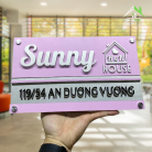• Thiết kế & phong cách: Phối màu tím pastel dịu mắt, tên nhà “Sunny House” nổi bật, tông chữ mềm mại, hiện đại và gần gũi.