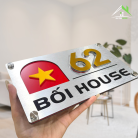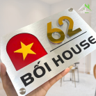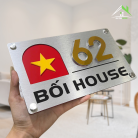Biển Số Nhà Bạc Xước – In Hình Lá Cờ Việt Nam – Số Nổi 5mm Sang Trọng Ngoài Trời