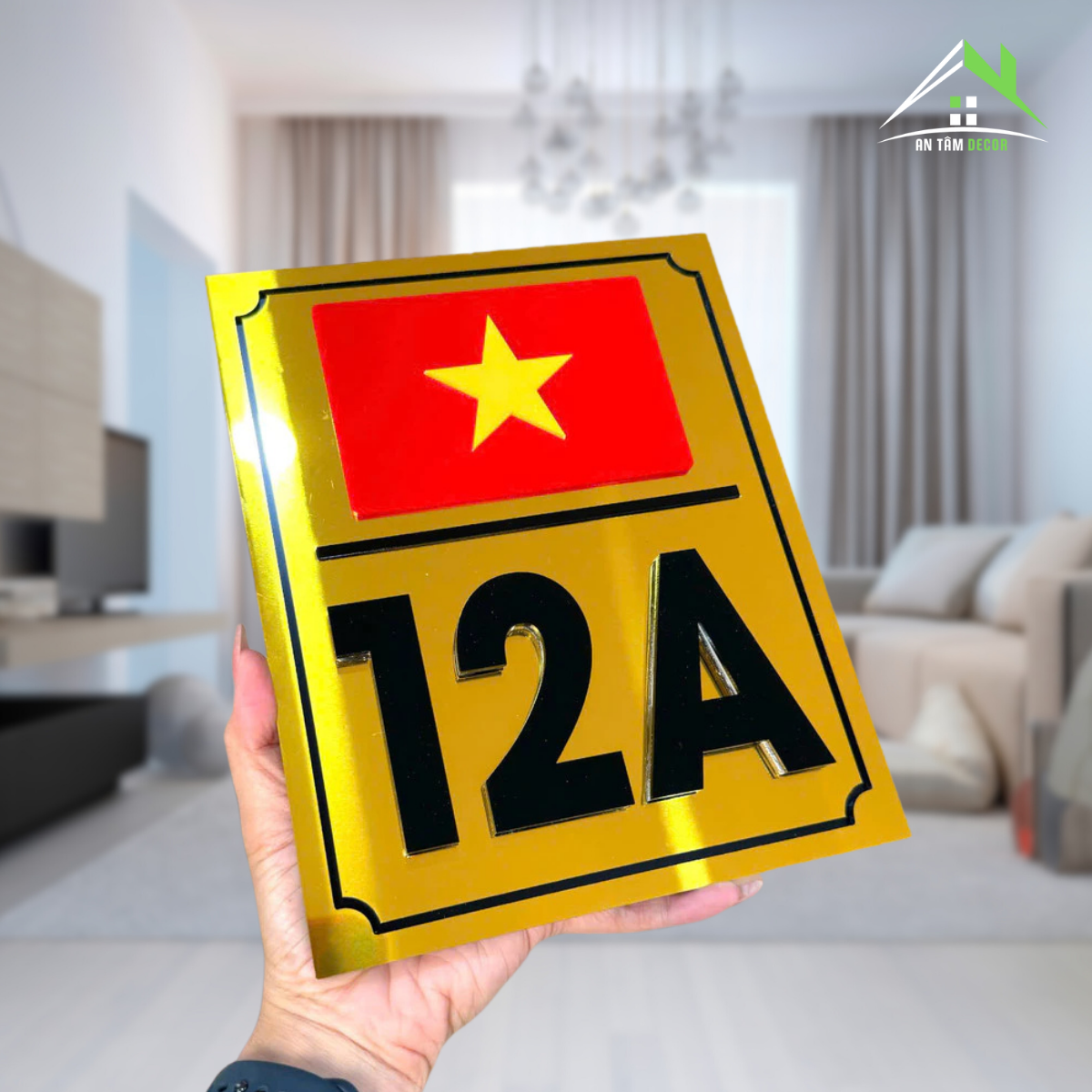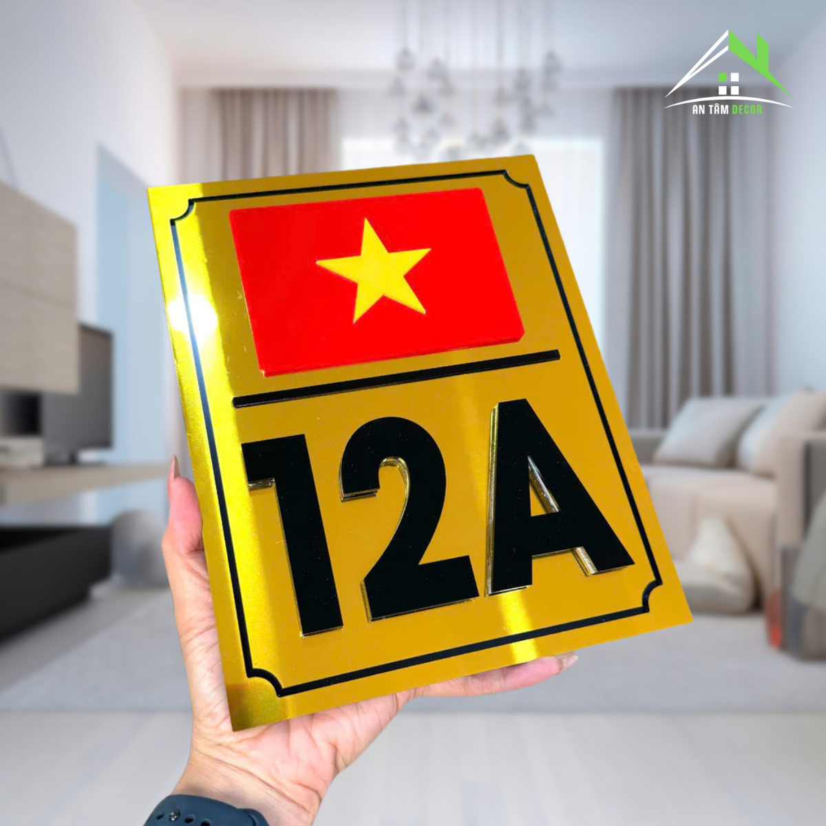 Biển Số Nhà Cờ Đỏ Sao Vàng Mica Số Nổi, Nền Vàng Gương Sang Trọng
