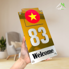 Biển Số Nhà “Welcome” Nền Vàng Gương In Cờ Việt Nam