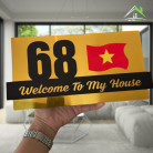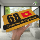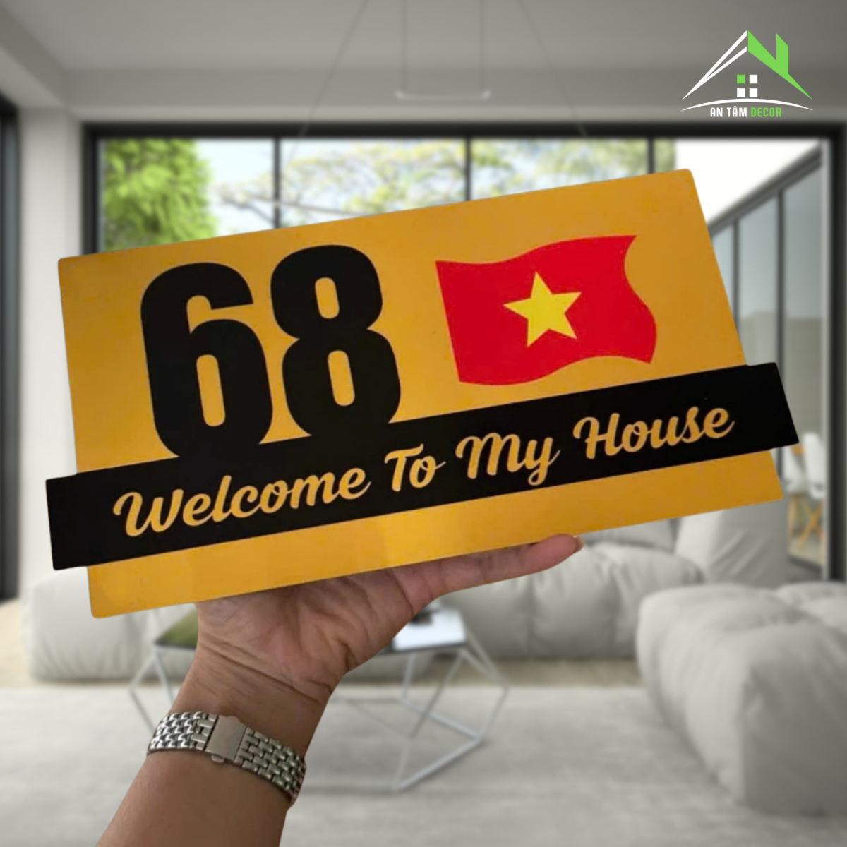 Tông nền vàng ánh kim sang trọng, kết hợp dải chữ đen nổi bật dòng “Welcome To My House” – vừa lịch sự vừa hiện đại.