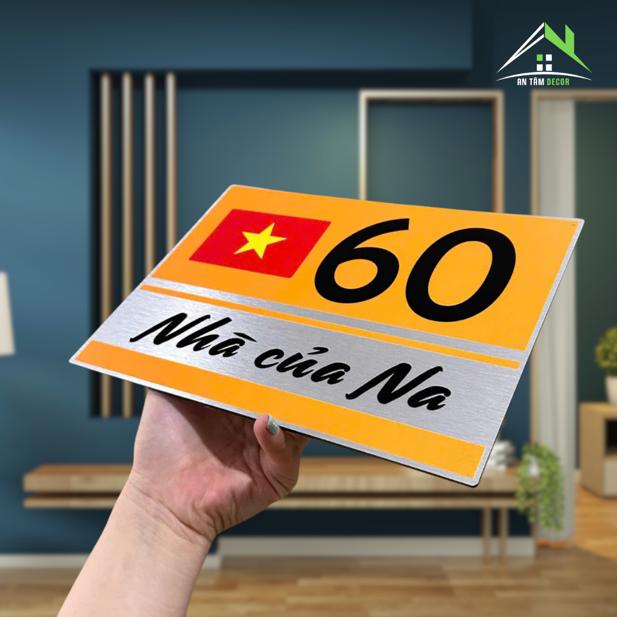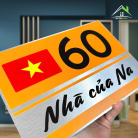 Biển Số Nhà Nền Bạc Xước – Cờ Việt Nam Nổi – In UV Vàng Cam Hiện Đại