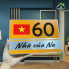 Biển Số Nhà Nền Xanh Dương – Cờ Việt Nam Nổi – Chữ Số Vàng Gương Nổi 10mm