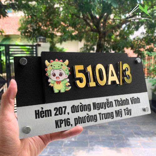 • Sản phẩm: Biển số nhà ngoài trời – thiết kế trang trí theo yêu cầu, phù hợp với nhà phố, nhà có trẻ nhỏ hoặc các gia đình yêu thích sự sáng tạo, dễ thương.