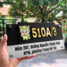 • Màu sắc: Nền mica đen sần kết hợp mặt inox xước bạc. Số nhà nổi mica vàng đế trong 10mm – rõ nét, sang trọng.