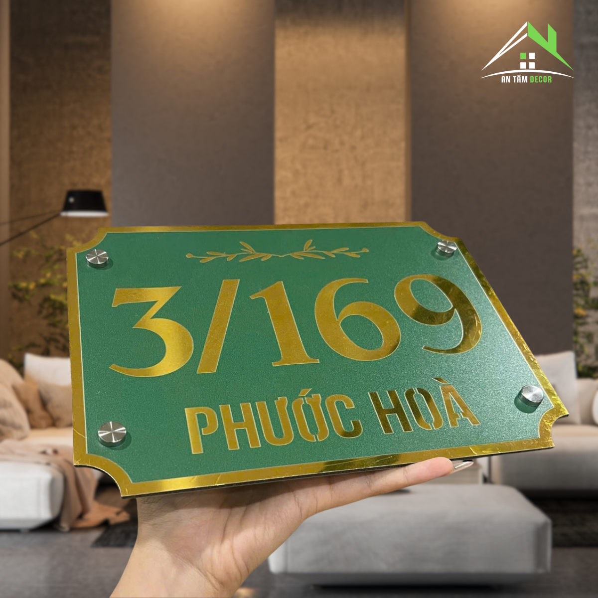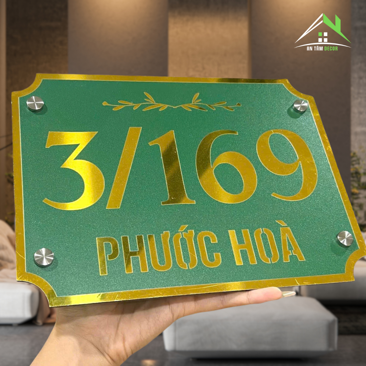 Trang trí hoạ tiết nhánh lá, số và chữ in UV sắc nét. Tạo điểm nhấn trước cửa nhà.