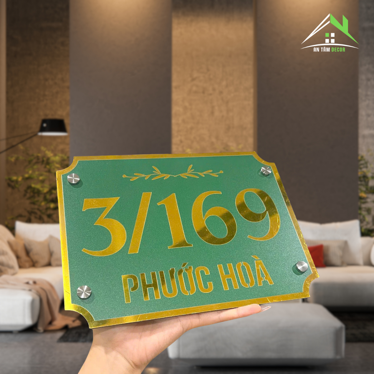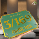 BIỂN SỐ NHÀ GƯƠNG VÀNG – NỀN XANH LÁ SẦN – KHẮC SỐ CHÌM – CÓ LÁ CỜ VIỆT NAM