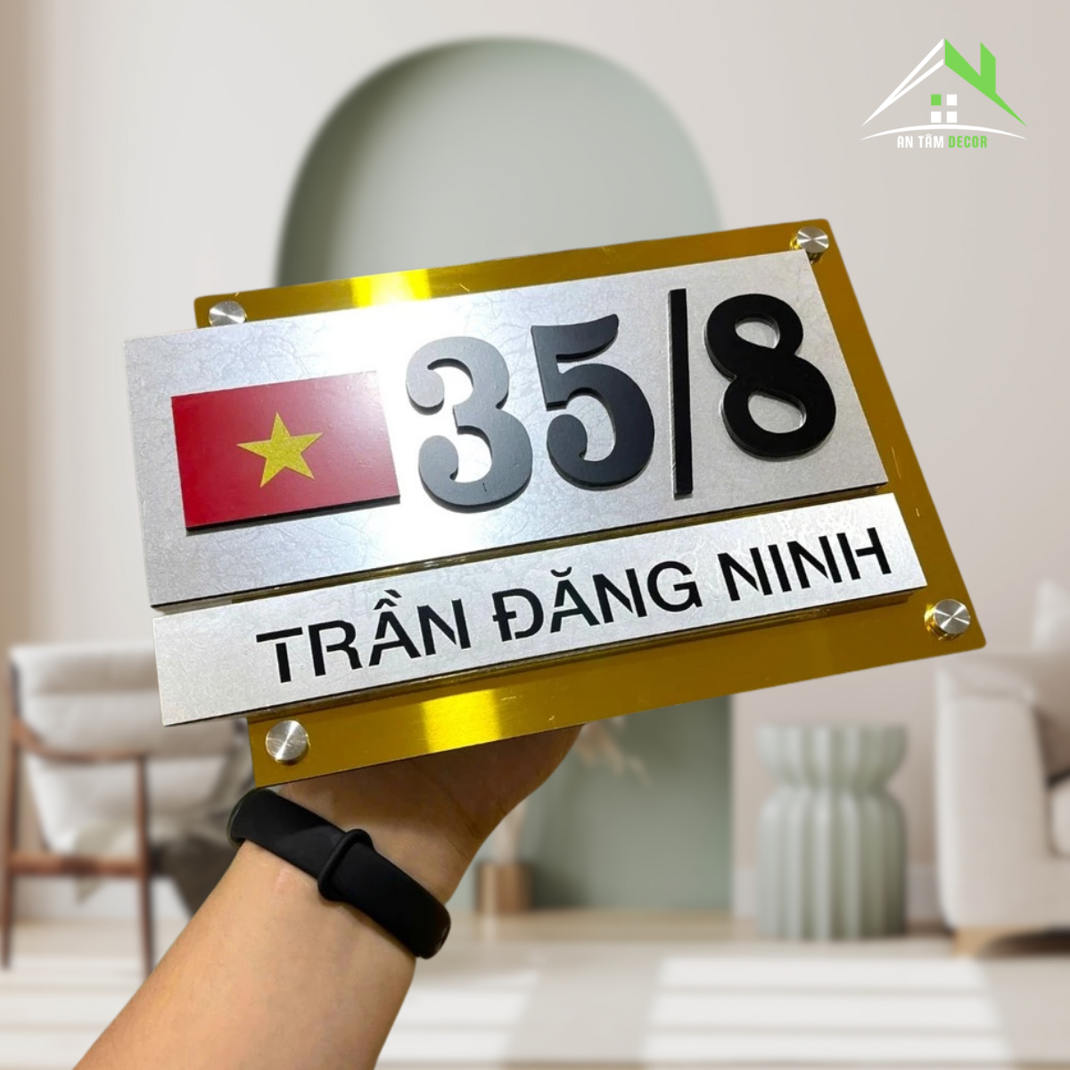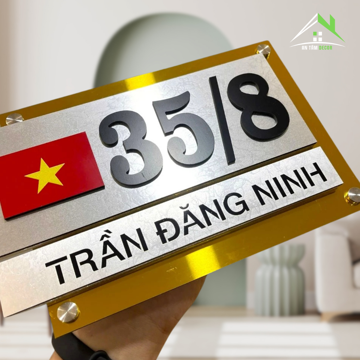 Alcorest cao cấp kết hợp Mica nổi. Lá cờ và số nhà được làm dạng nổi bật rõ nét.