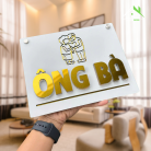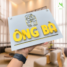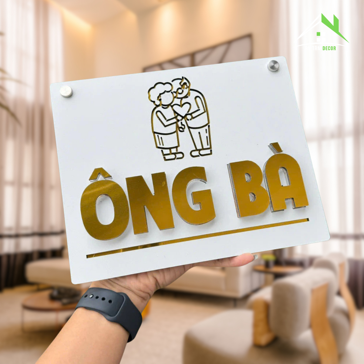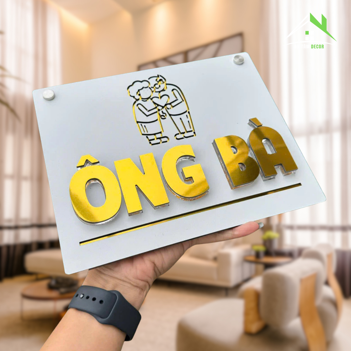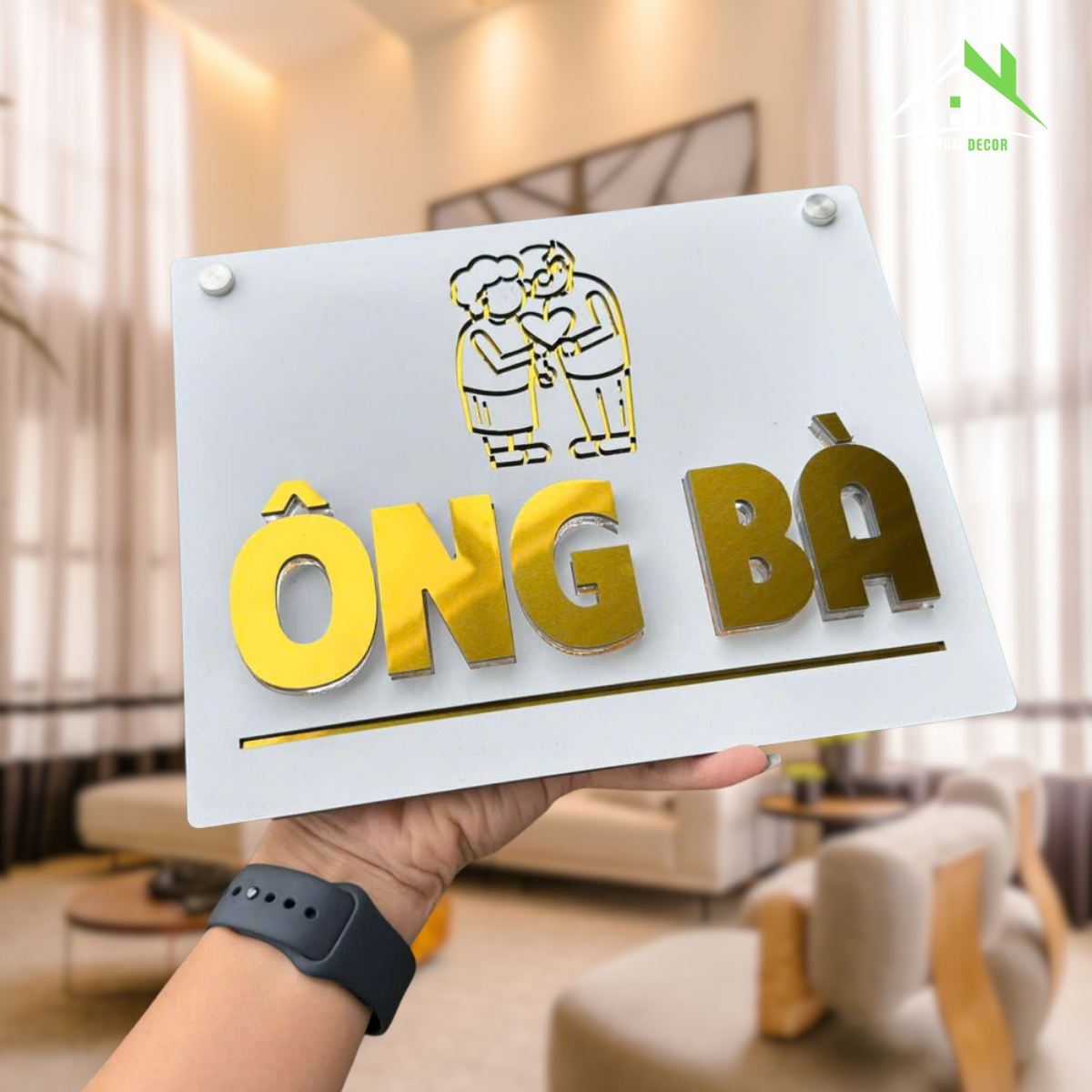 BIỂN SỐ NHÀ Mẫu ÔNG BÀ Tôi – Nền Trắng Sần, Nội Dung Alu Gương Vàng, Số Nổi 1cm – Mẫu Siêu Dễ Thương